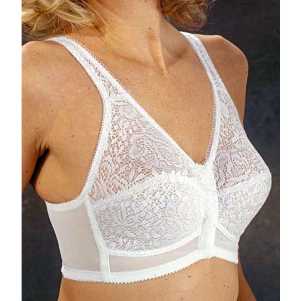 Framknäppt Hållnings-BH Hemligheten bakom succén med Hållnings-BHn är den mycket speciella designen.Korslagda band i ryggen hjälper till att lyfta upp och stödja bysten. Fintvätt 40°.Material: 87% polyamid, 13 % elastanFärg: Vit